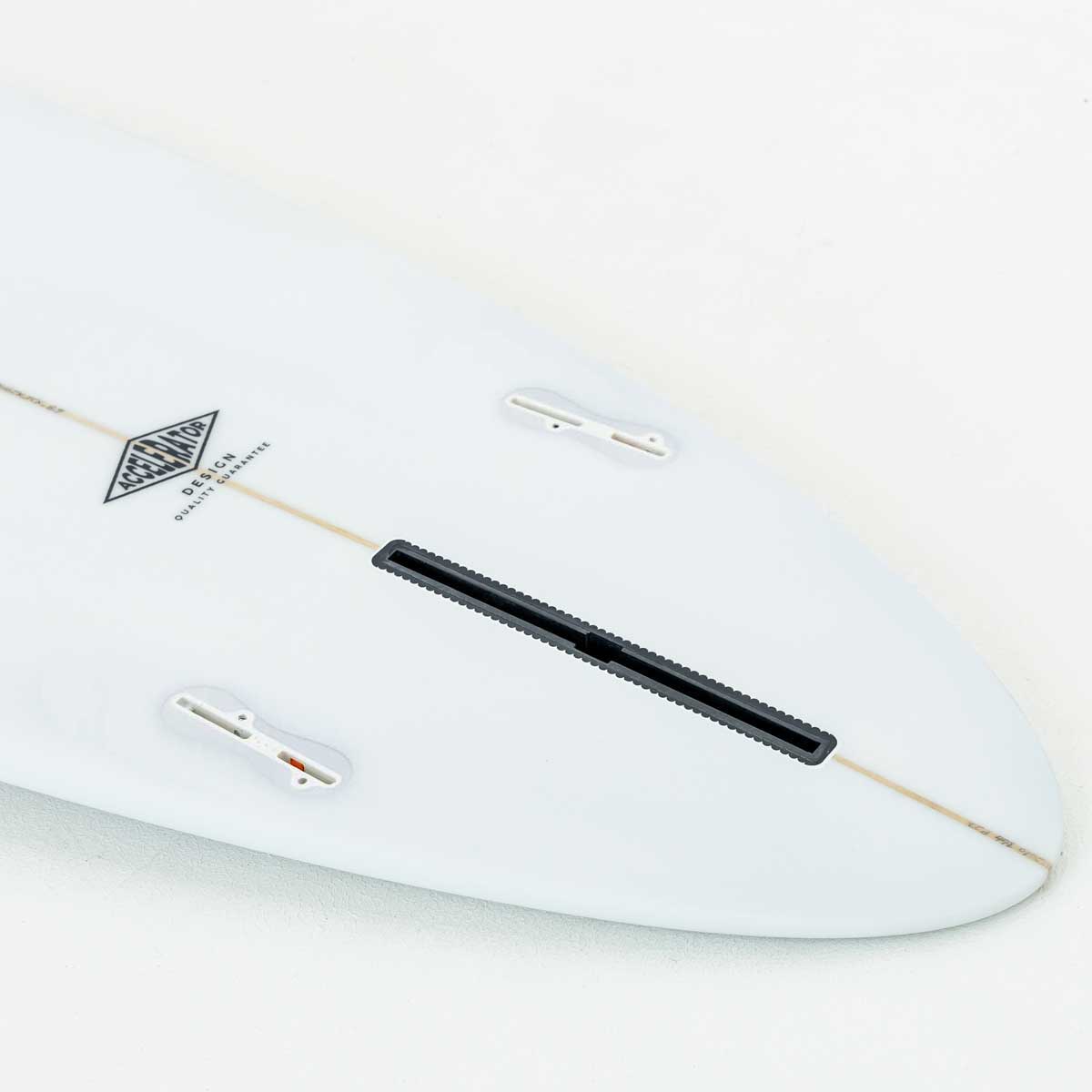 フィンボックスは2+1でサイドフィンはFCSⅡ仕様。スタビライザーのフィンを付けて2+1が基本ですが、シングルフィンや大きめのツインフィンでも楽しめます。